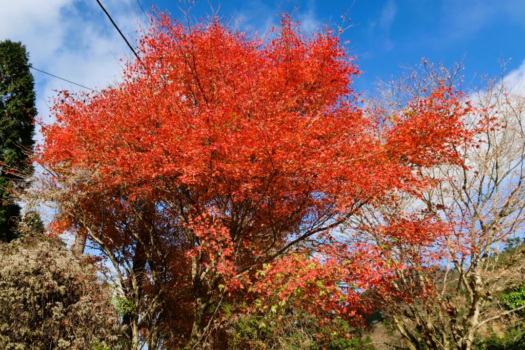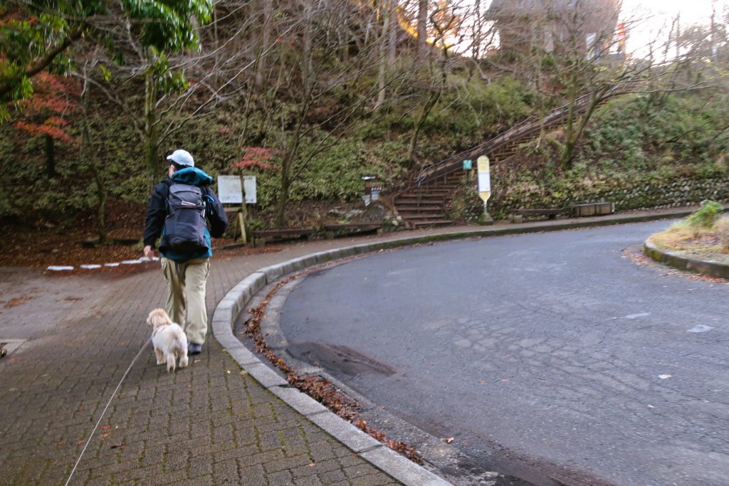 標高761m。紅葉の残る駐車場からバスロータリーの方へ進みます。