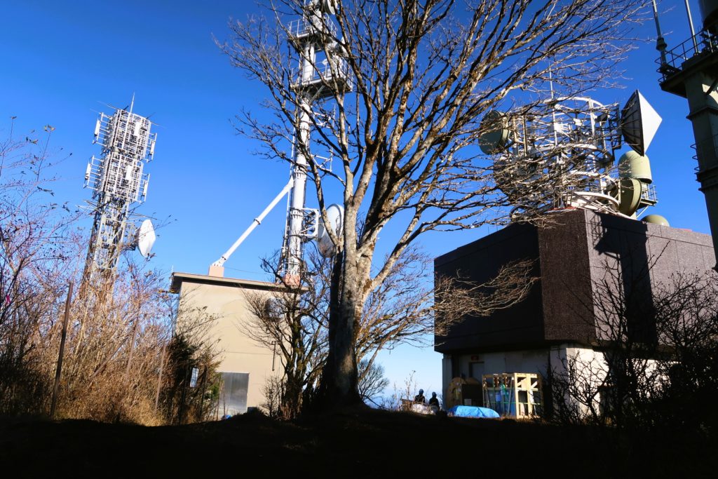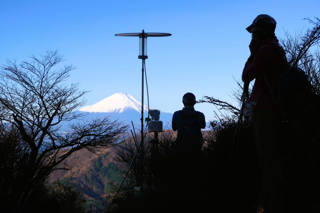 電波塔の先にある『見晴台』からは、丹沢山・塔ノ岳などの丹沢山塊を一望でき、その後ろには雄大な富士山の姿が望めます。