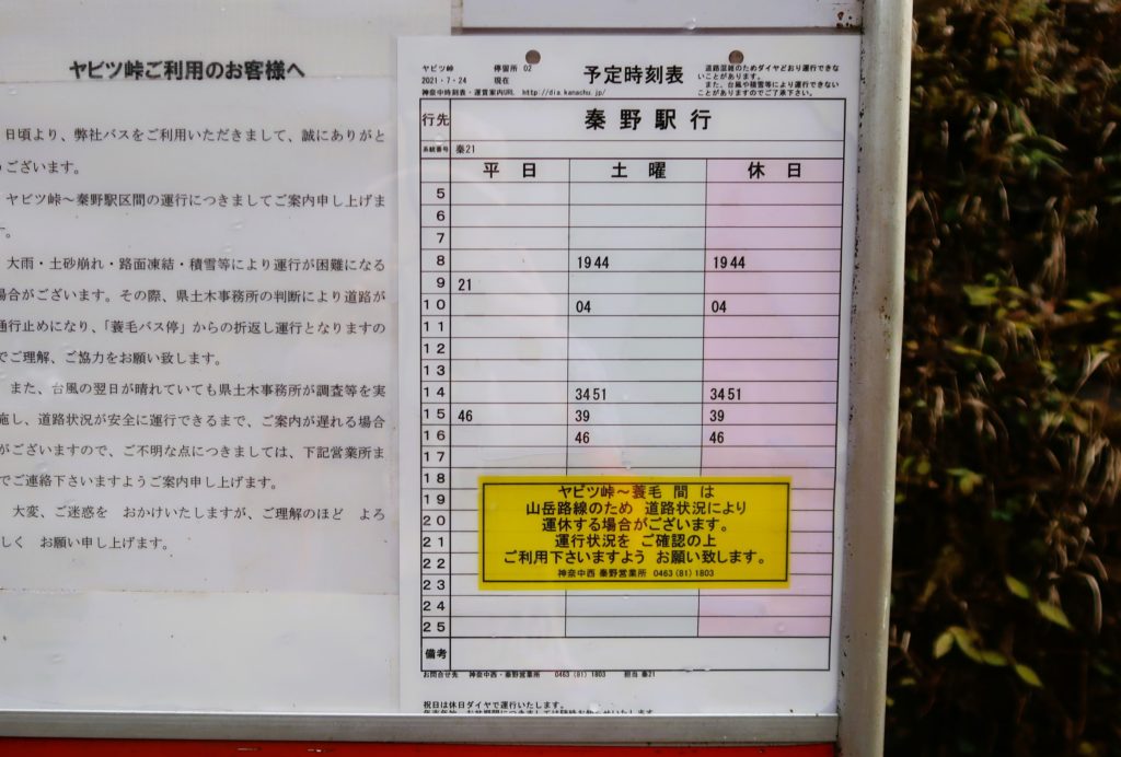 時刻表をチェックすると、バスの本数はあまり多くないようです。