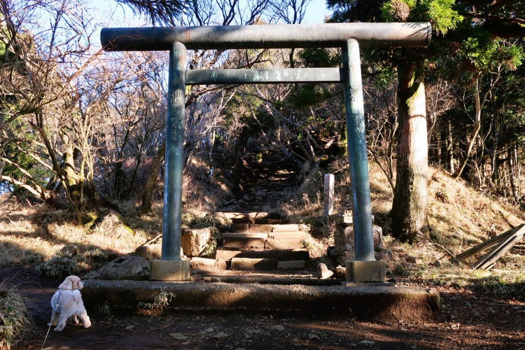 鳥居が見えてきました。その傍らには富士山を望めるビューポイントがあります。