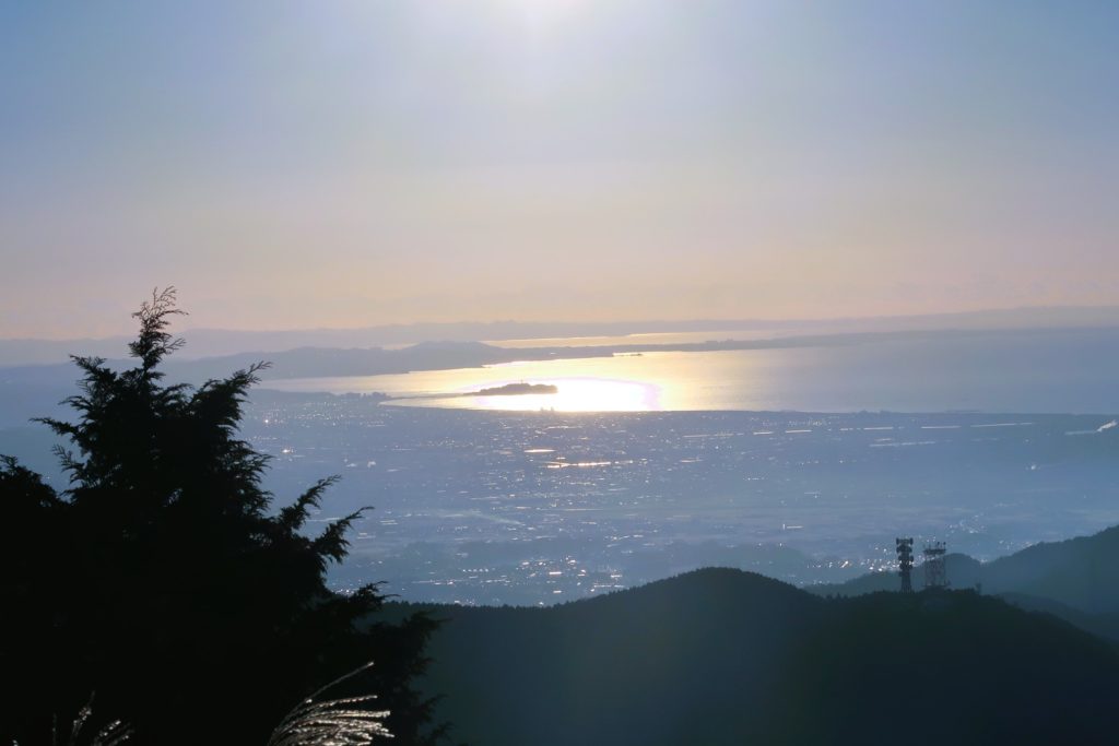 眼下に広がるのは、相模湾を囲むように広がる山と市街地のコラボレーション。