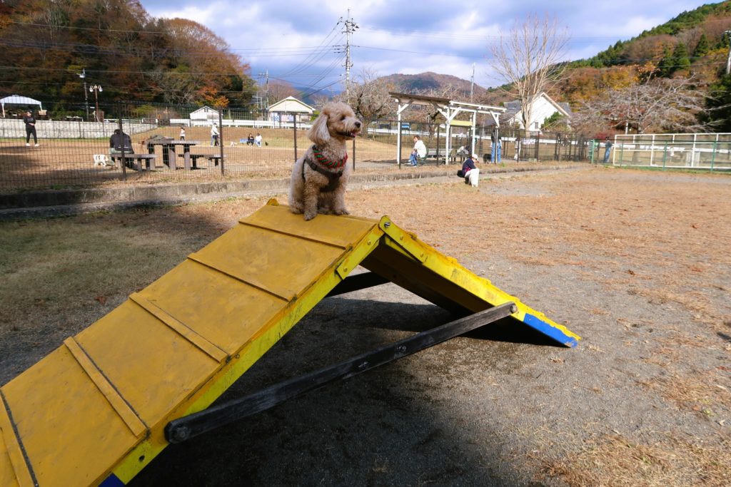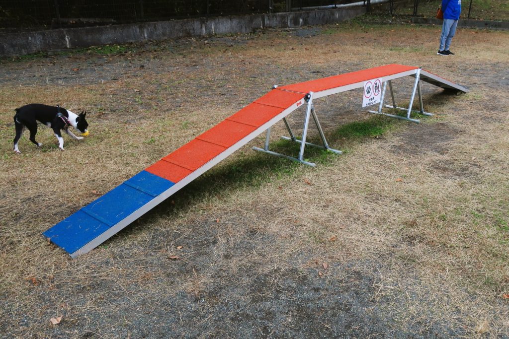 全犬種OKで、アジリティが設置されているエリアです。