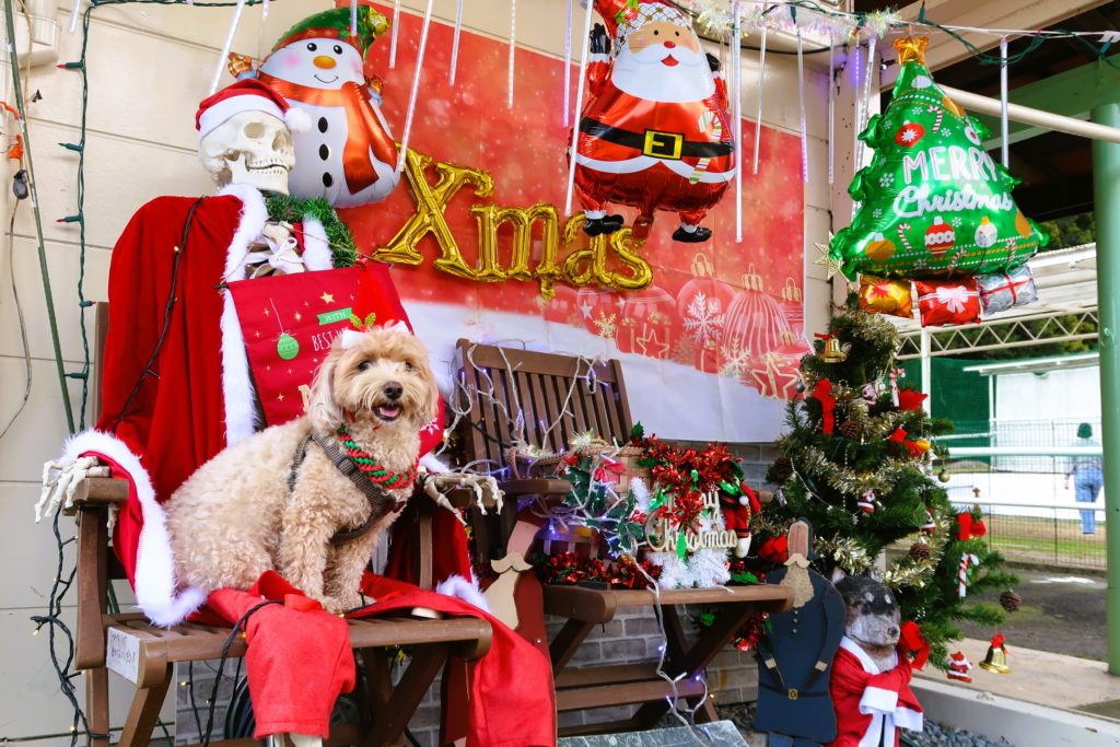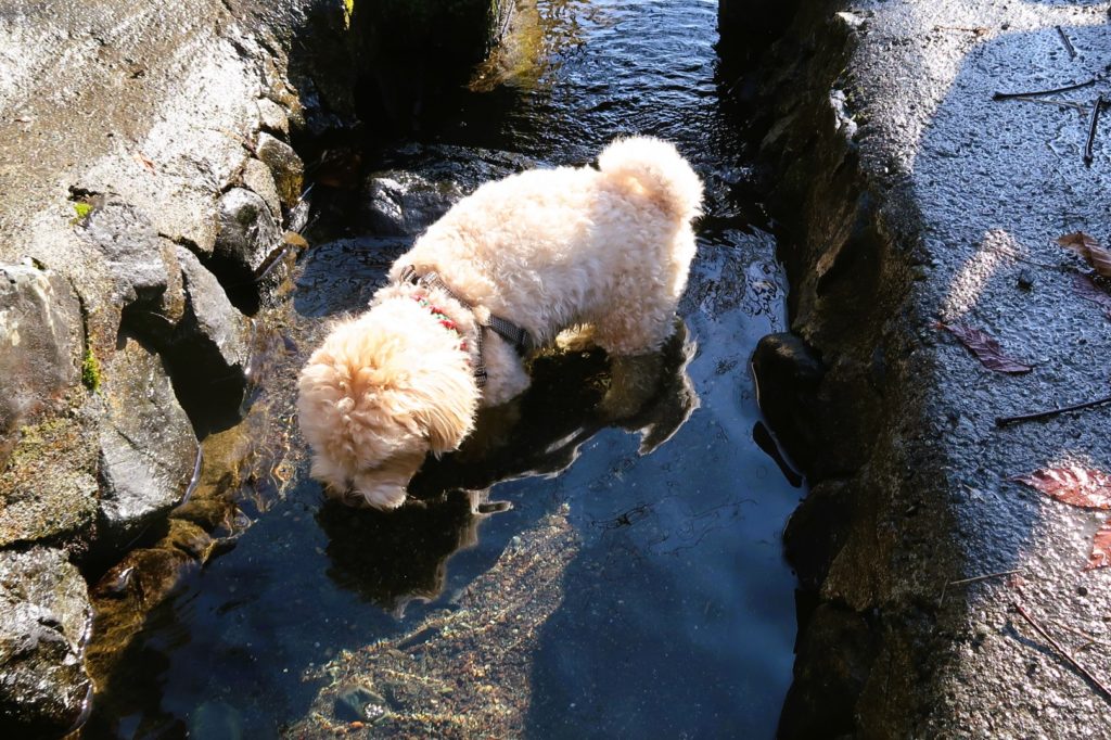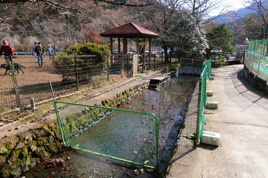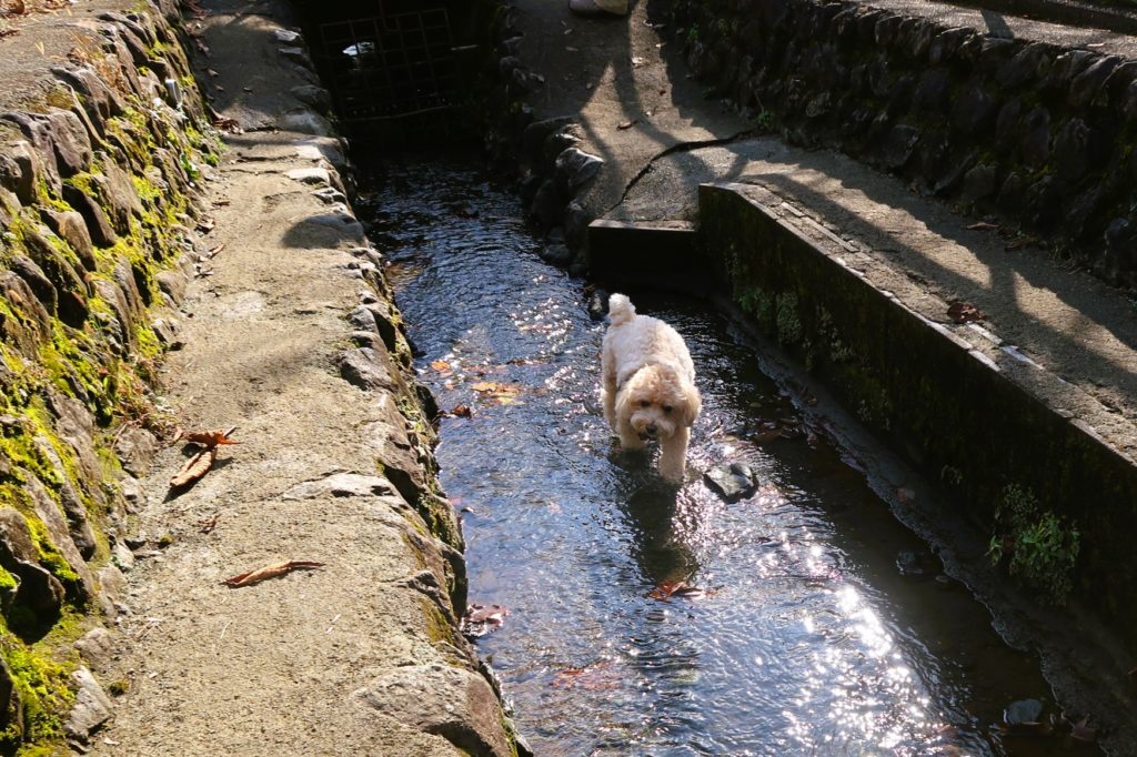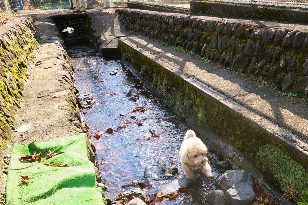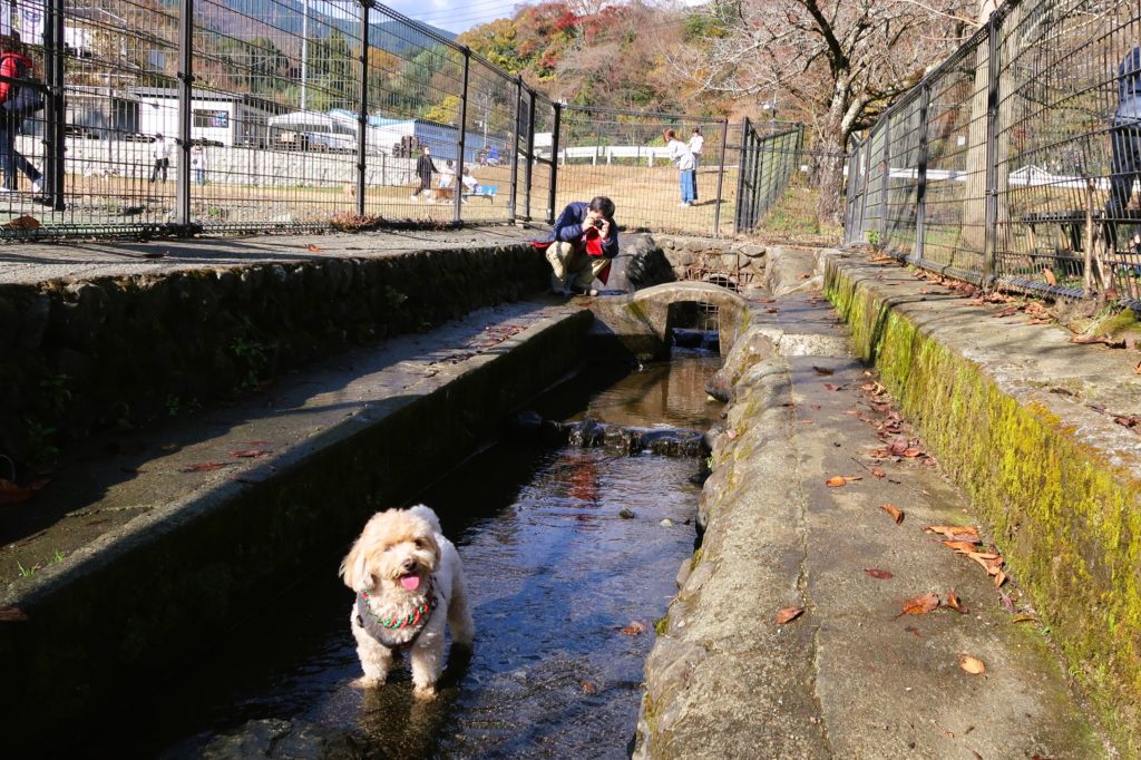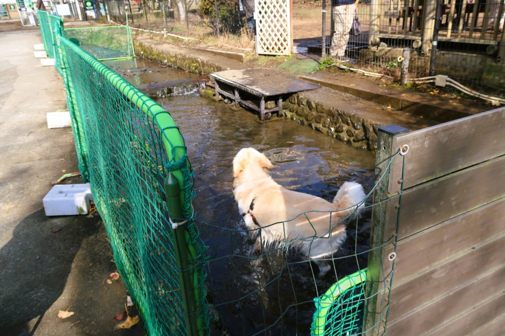 敷地内から小川に通じるドアがあり、水遊びを楽しむワンちゃんの姿もありました。