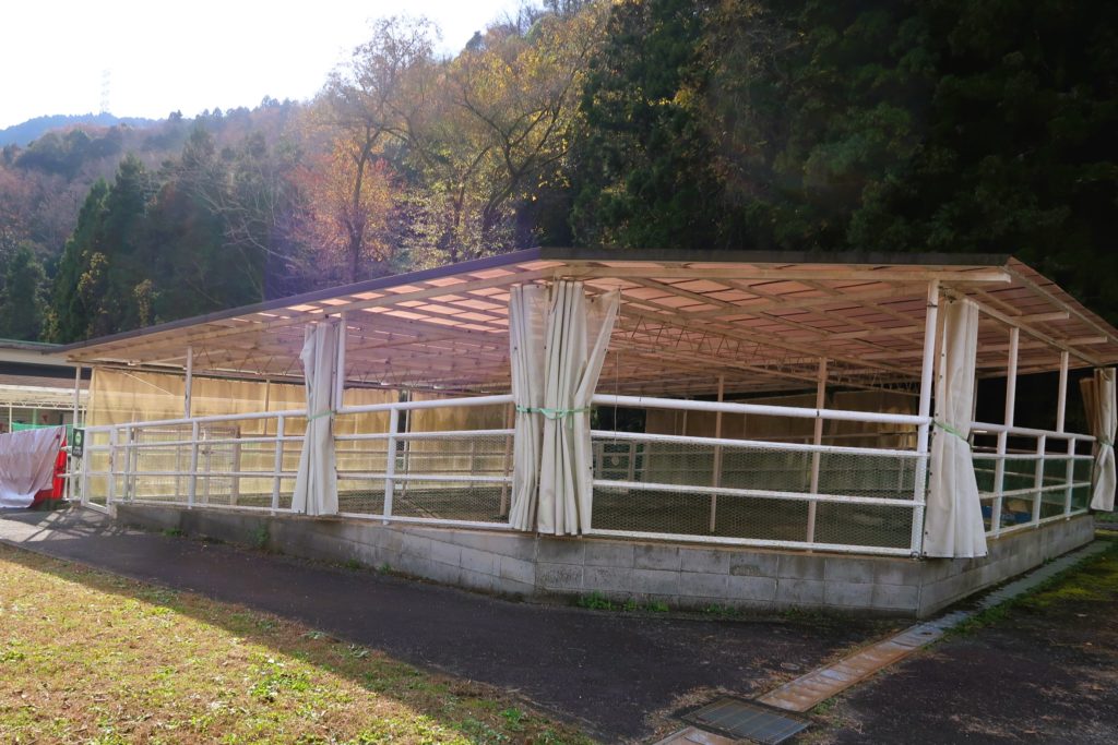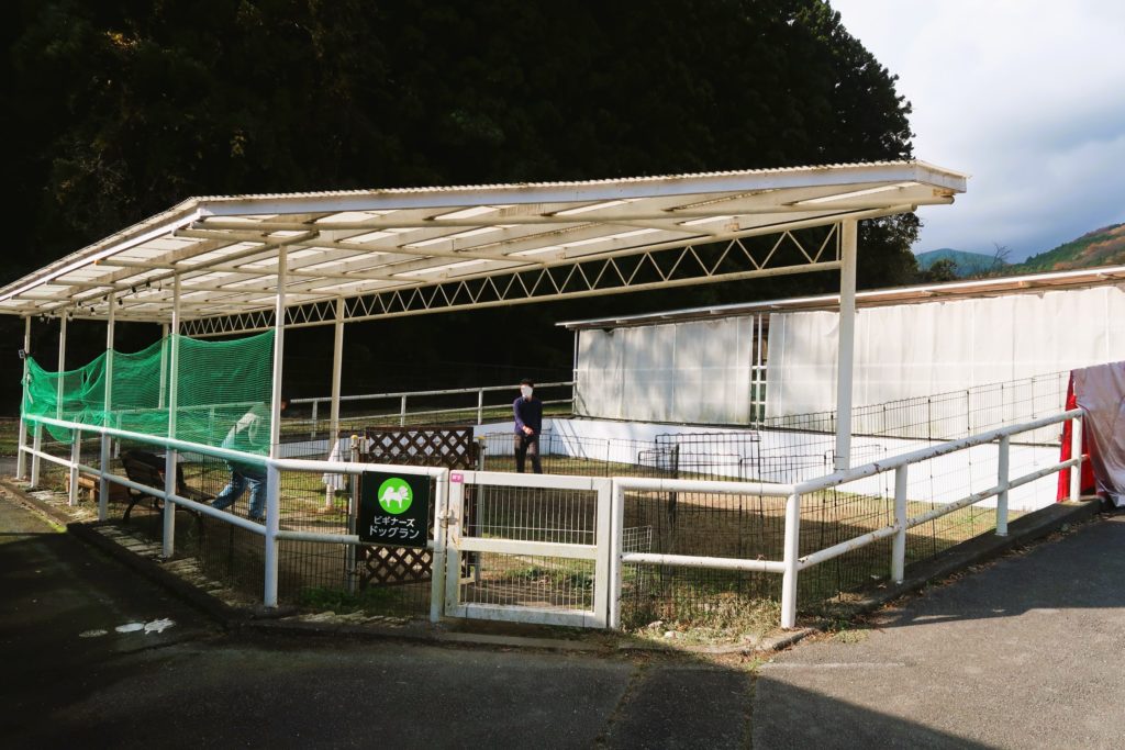 雨の日でも遊べる屋根付きのドッグラン。