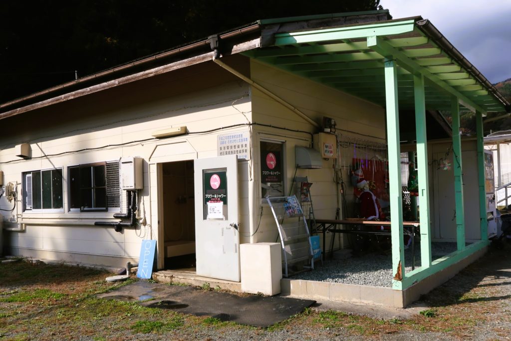 トイレの横には、水道が設置されていてシャワーも完備。