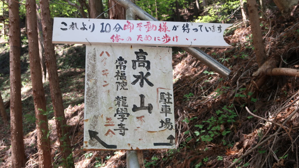 本堂にて登山の無事をお祈りしたら、高水山山頂を目指しましょう。案内板に沿って登っていきます。ここから山頂までは10分ほどです。