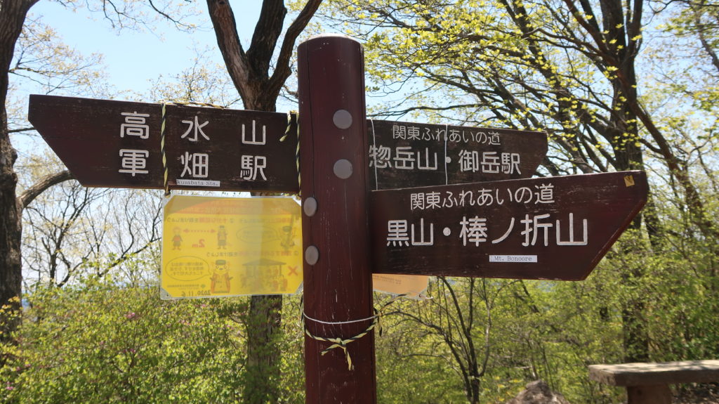 高水三山だけでなく「棒の折山」など、4方面への分岐点となっているので、各方面から人が集まり賑わう場所です。