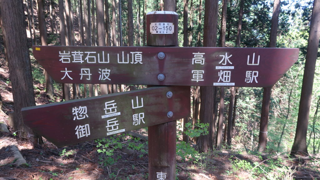 JR青梅線「軍畑」駅から1時間30分、または「上成木」バス停から1時間10分で登れます。