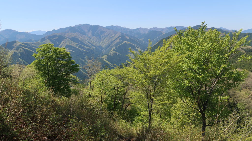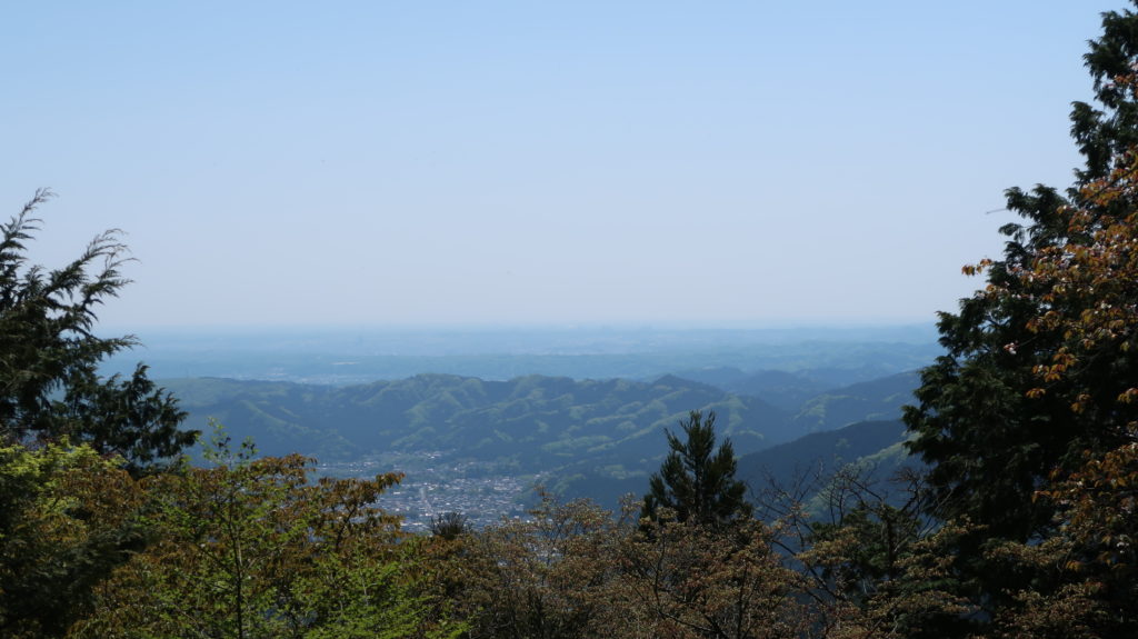 周りは木に囲まれていますが、木々の間からは大岳山や奥多摩方面の山々の眺望が楽しめます。