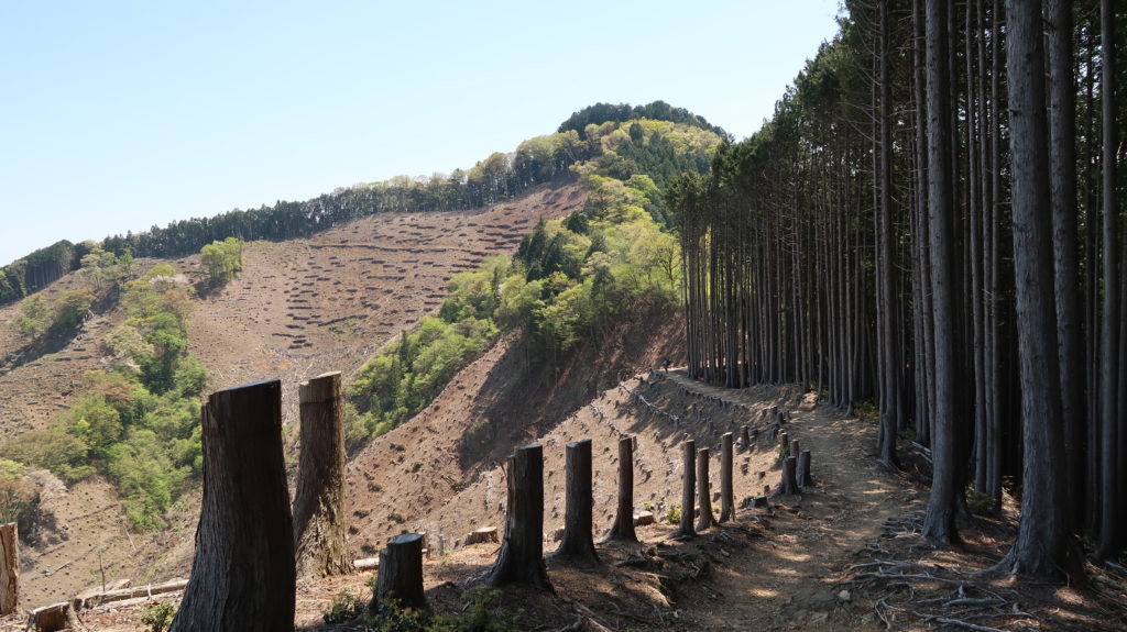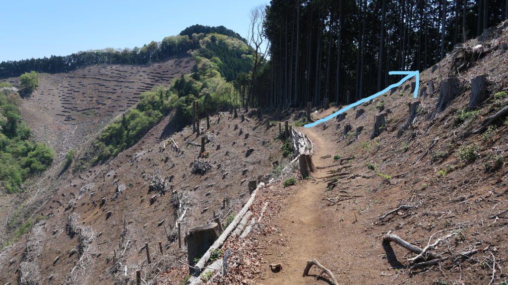 伐採されたエリアが始まったたら、森に沿うように上がっていきます。
