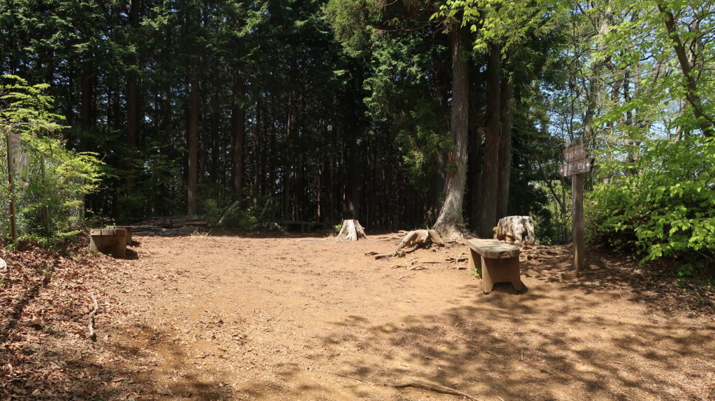 広いスペースがありベンチも設置されています。正面に大岳山を望むことができ、周りを囲む木々に癒されホッとできる場所となっています。
