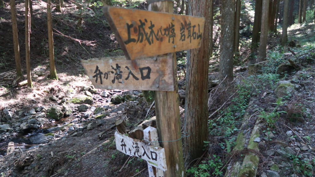 しばらく気持ちのいい森林浴を楽しんでいると、分岐の案内板があります。