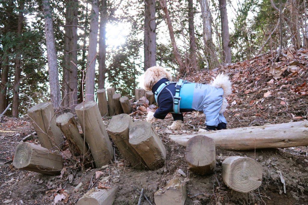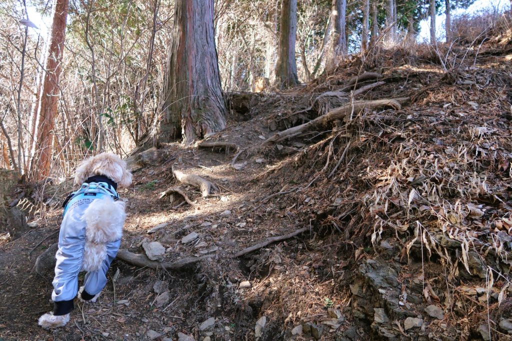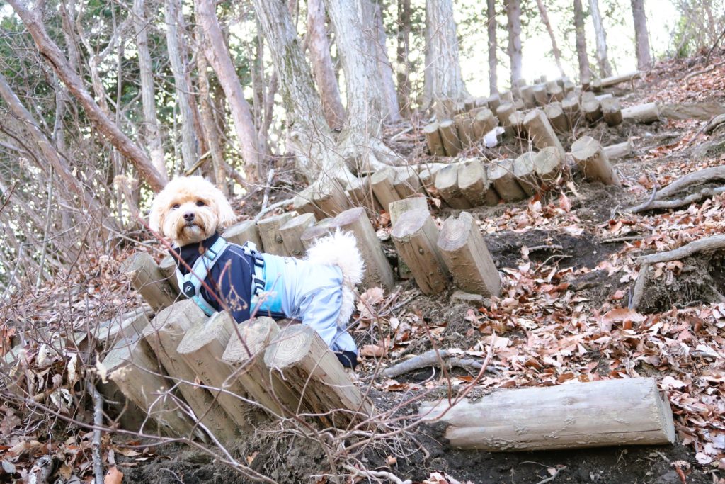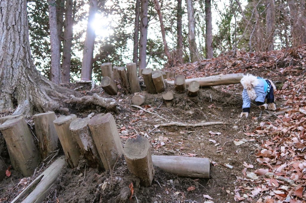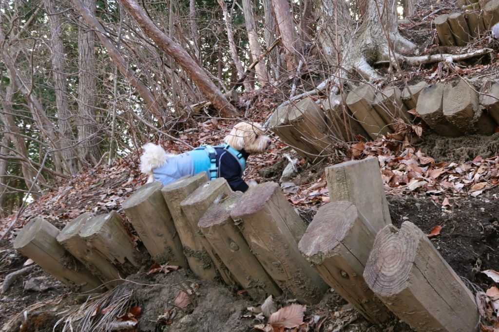 丸太のストッパーが設置されているので足掛かりとなり、急勾配ですが安全に登ることができます。