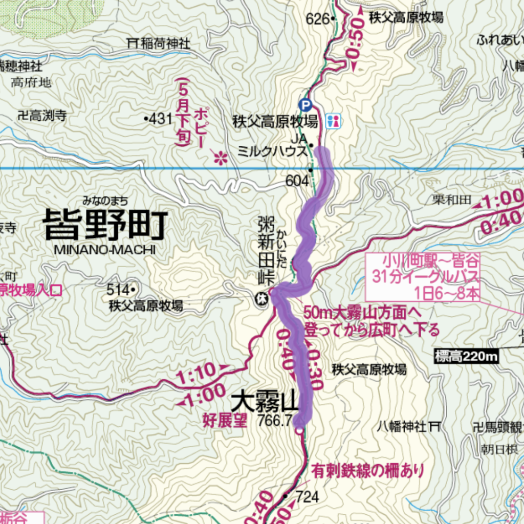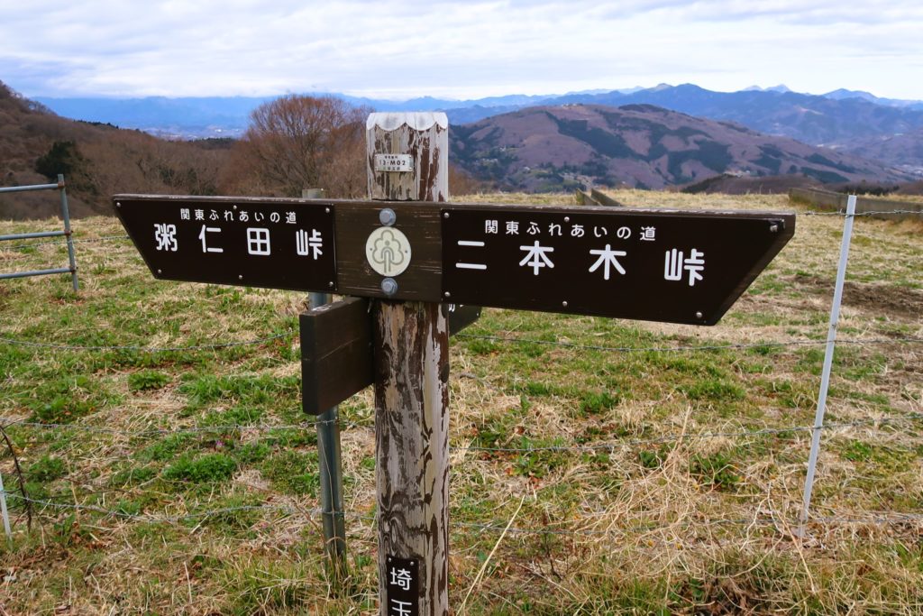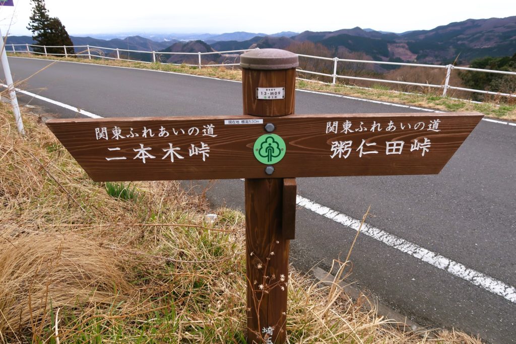 ※地図中「粥新田峠(かいにだとおげ)」とありますが、標柱は「粥仁田峠」なので、表記・読み方が様々あるようです。