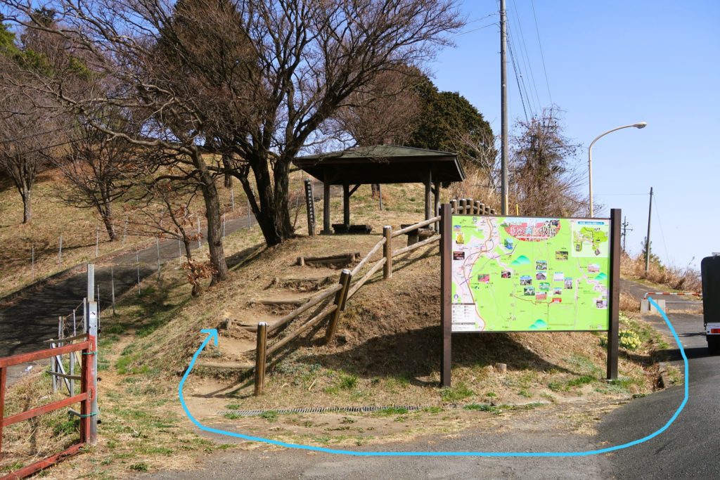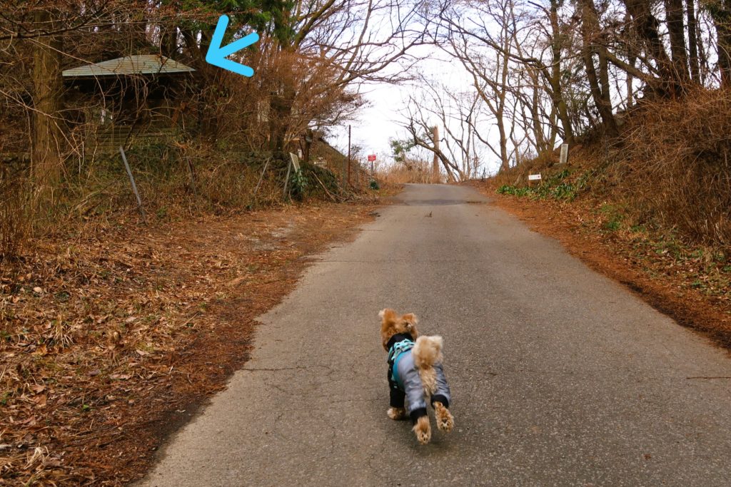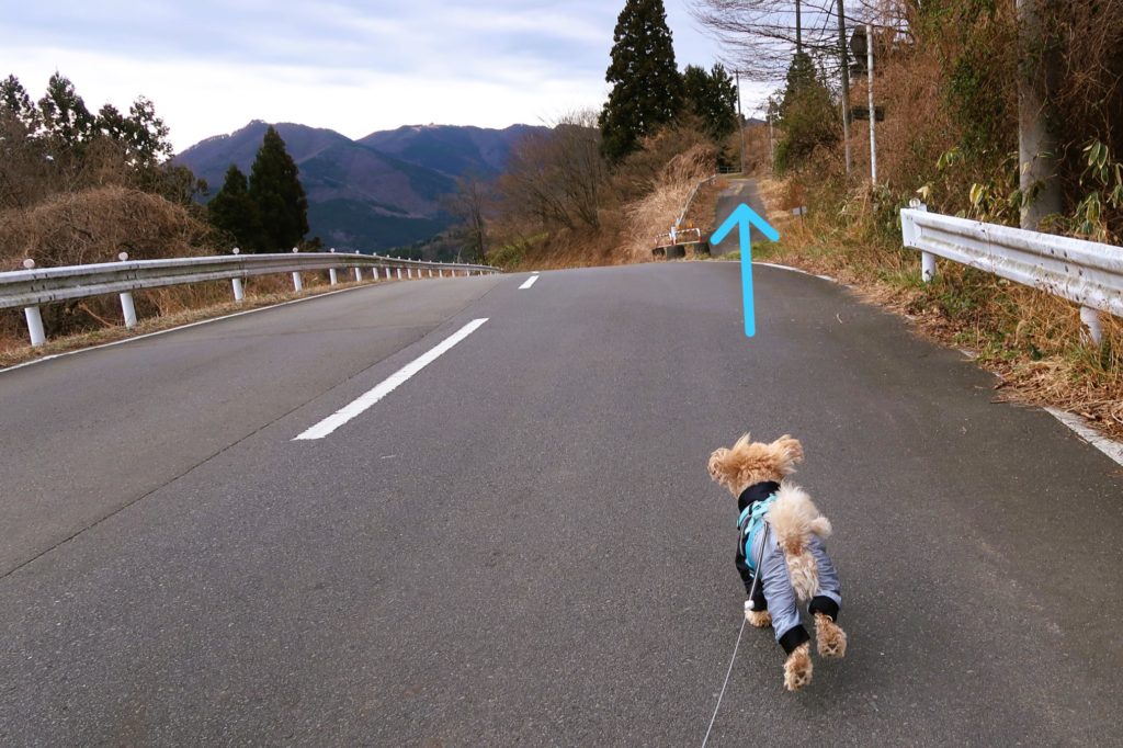まずは、車道を50mほど戻ったところの案内板を目指します。