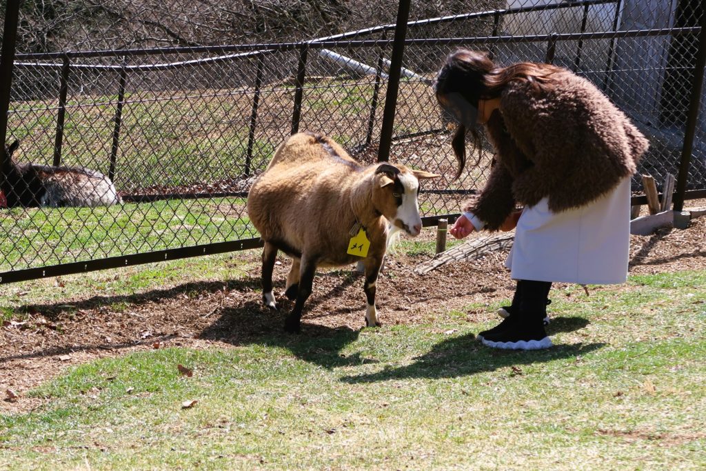 人間は柵の中に入って、ヤギとふれあうことができます。
