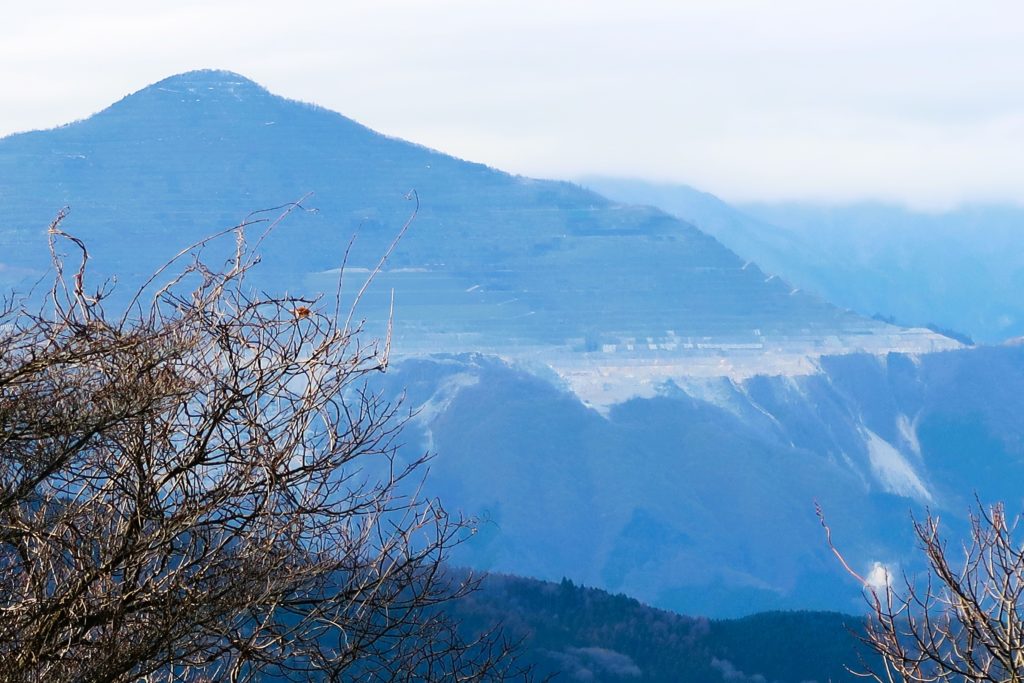 採掘場の様子が伺えるほど近くに「武甲山」、遠くには丸いフォルムが愛らしい「浅間山」が顔をのぞかせています。