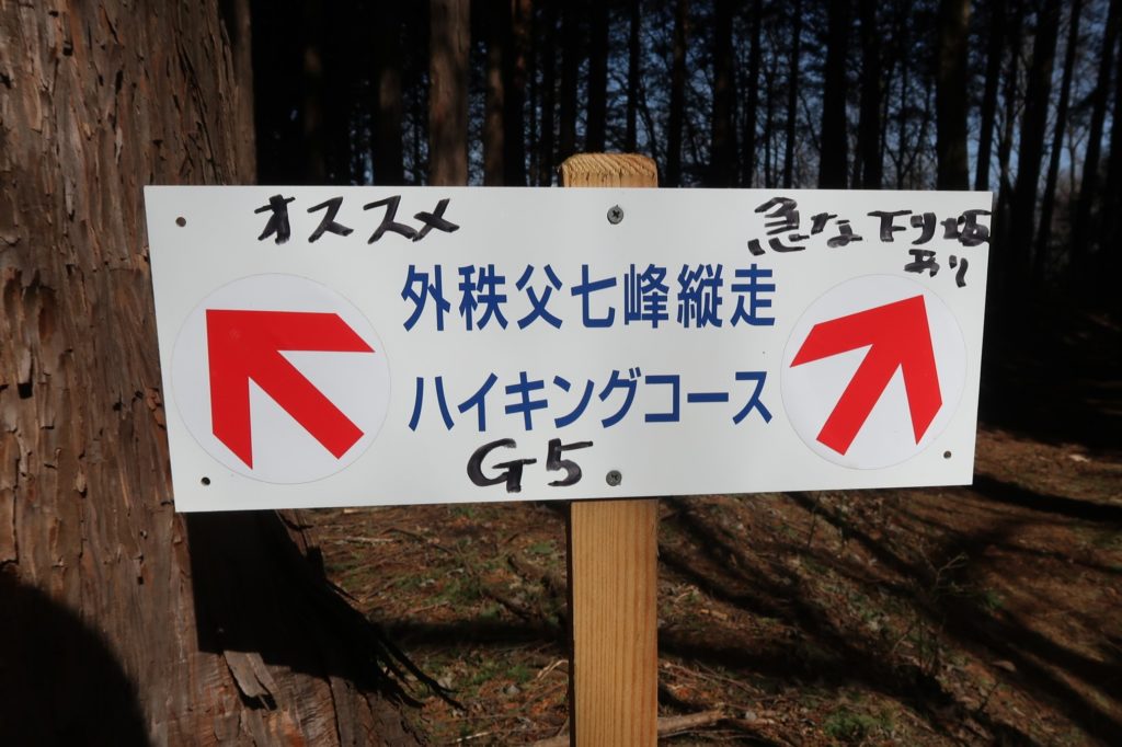 しばらく進むと「外秩父七峰縦走ハイキングコース」の案内板がありました。