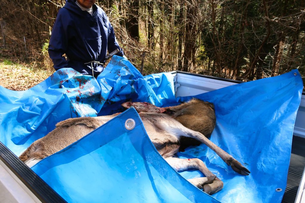 今日はすでに2頭捕獲しているということで、シカとイノシシを見せてくださいました。