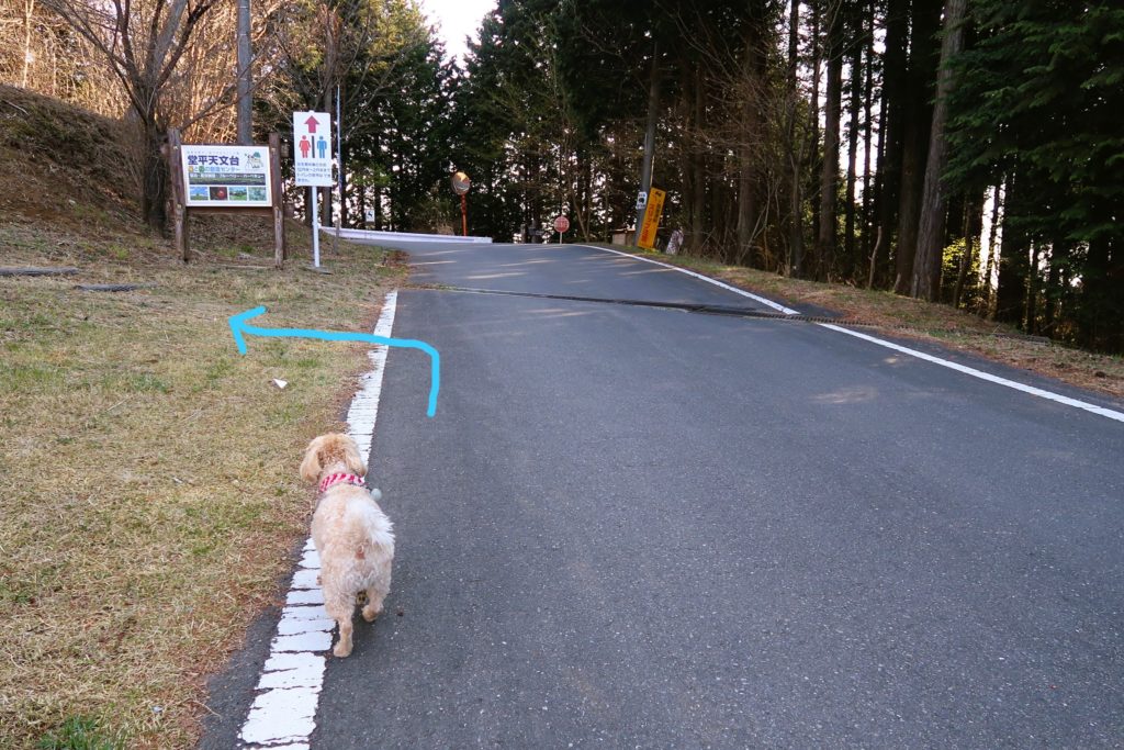 「天文台」への案内板 ※ここはペット立入禁止の記載なし