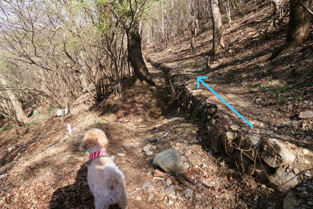 すぐに上下に分かれる道となるので、上の方へ進みましょう。