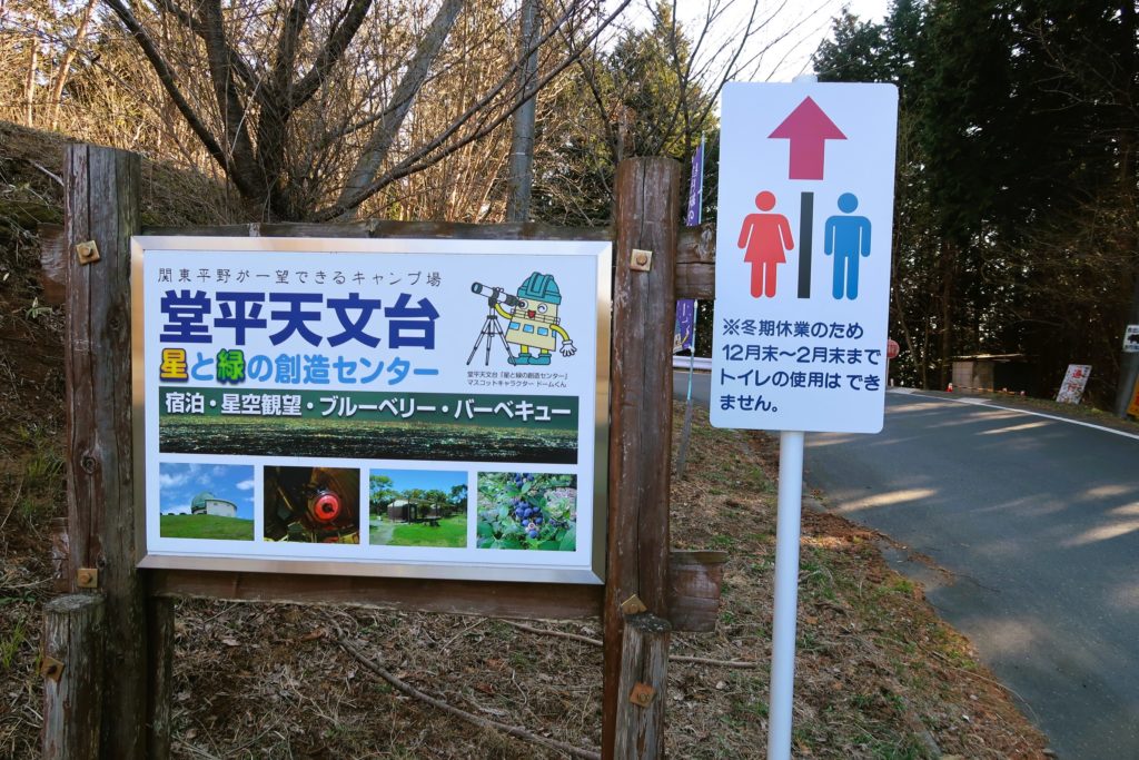 トイレは、堂平山山頂の「星と緑の創造センター」にあります。