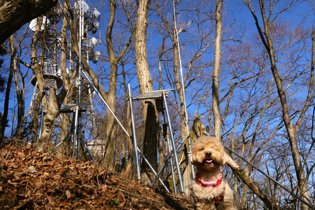 急な上り坂ですが、5分ほど登るとアンテナのようなものが見えてきました。