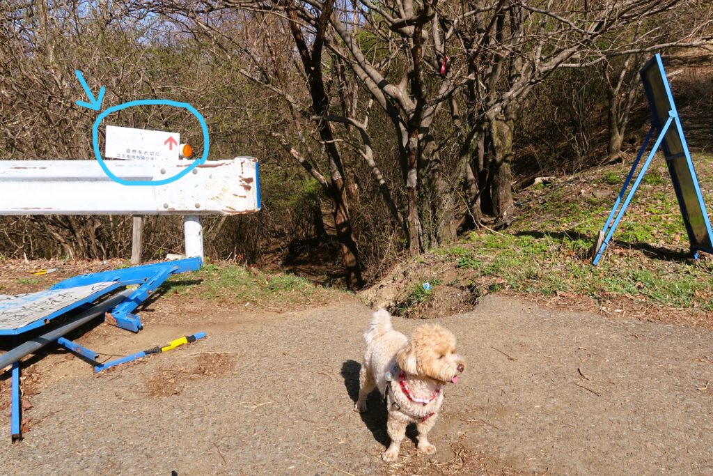 車道を少し進むと何やら案内板がありました。(ここには【ペット立入禁止】の表示はない)