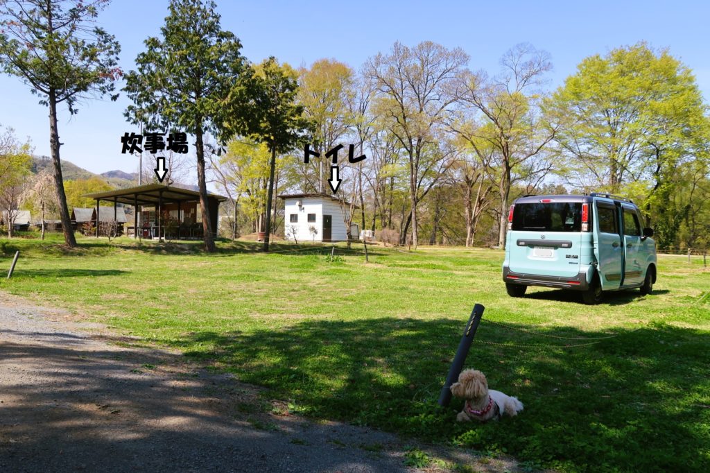 中央の炊事場・トイレにほど近いサイトへ案内していただきました。