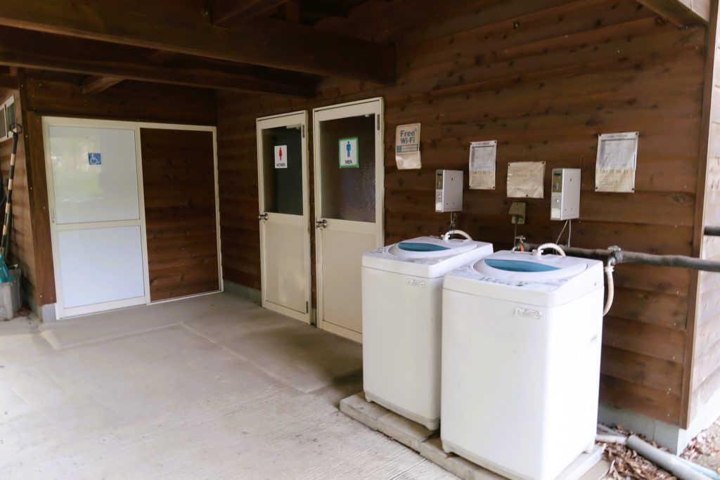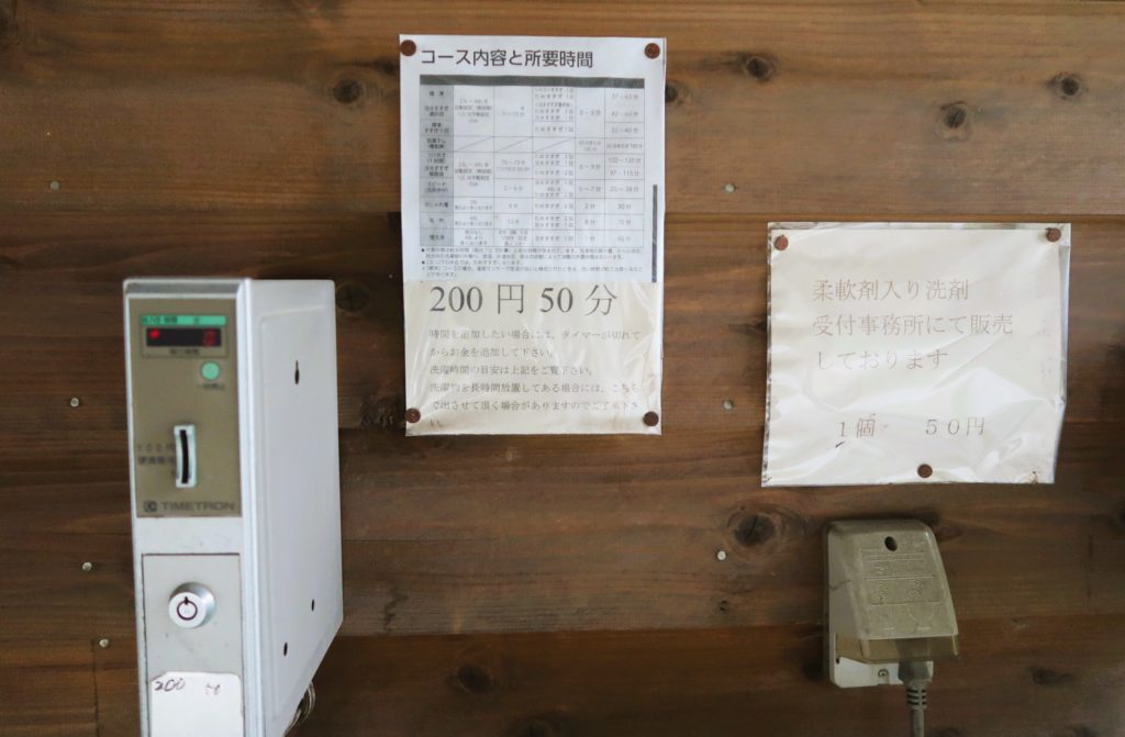 洗濯機が2台あり、50分200円です。洗剤は受付で販売しています。