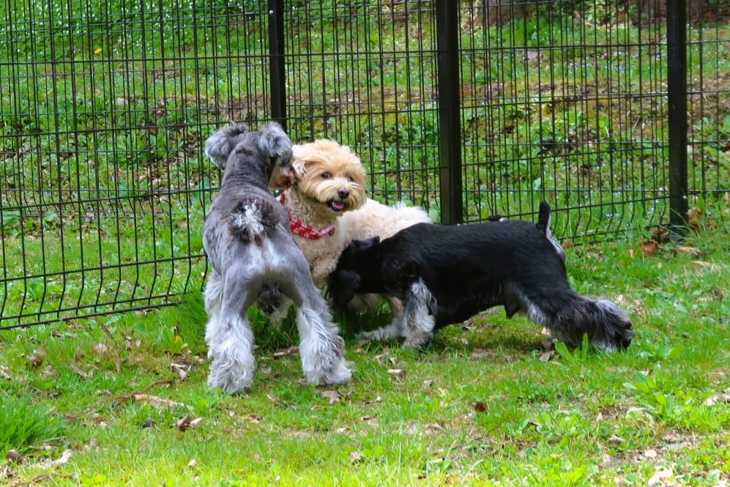 平日の朝だったので誰も来ないなーと思っていたところ、元気なシュナウザーちゃんが2頭やってきました。