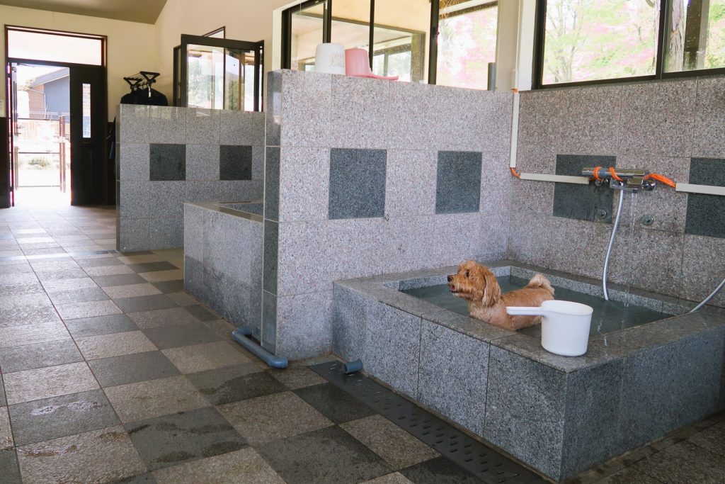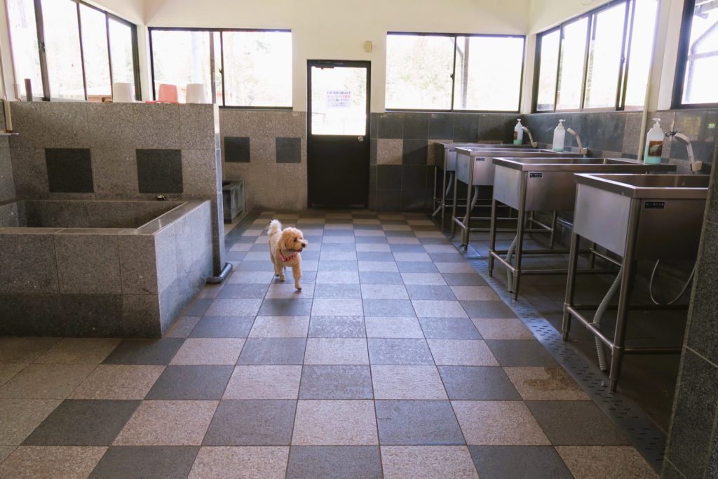 入口を入ると浴室になっており、そこを通り抜けるとドッグランへ出られます。