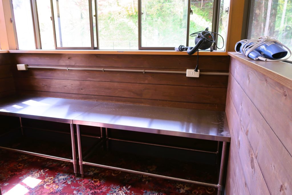 山側の炊事場、隣にトイレもあります。