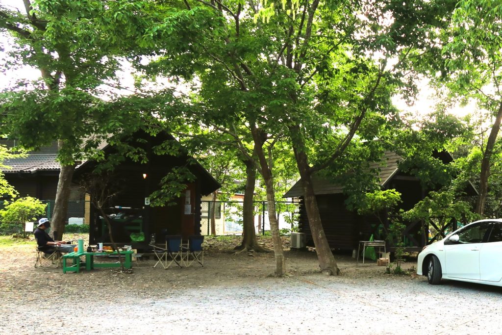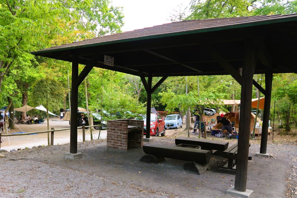 その他、中央に焚火台のある東屋(予約制・有料)とラフティング受付棟があります。