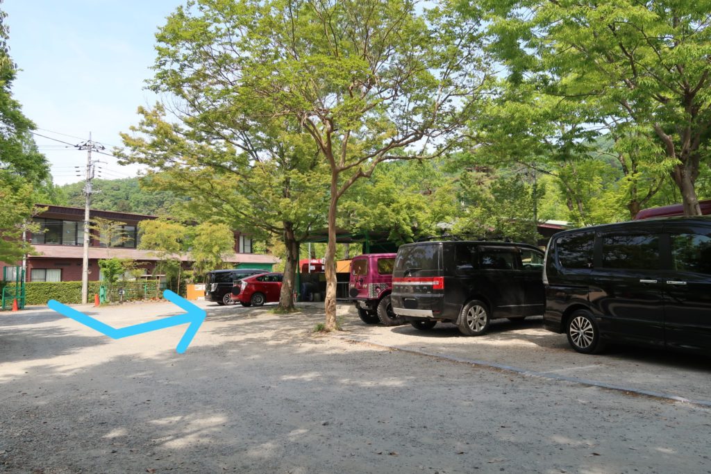 道路を渡りますが、キャンプ場からは3分くらいの距離です。