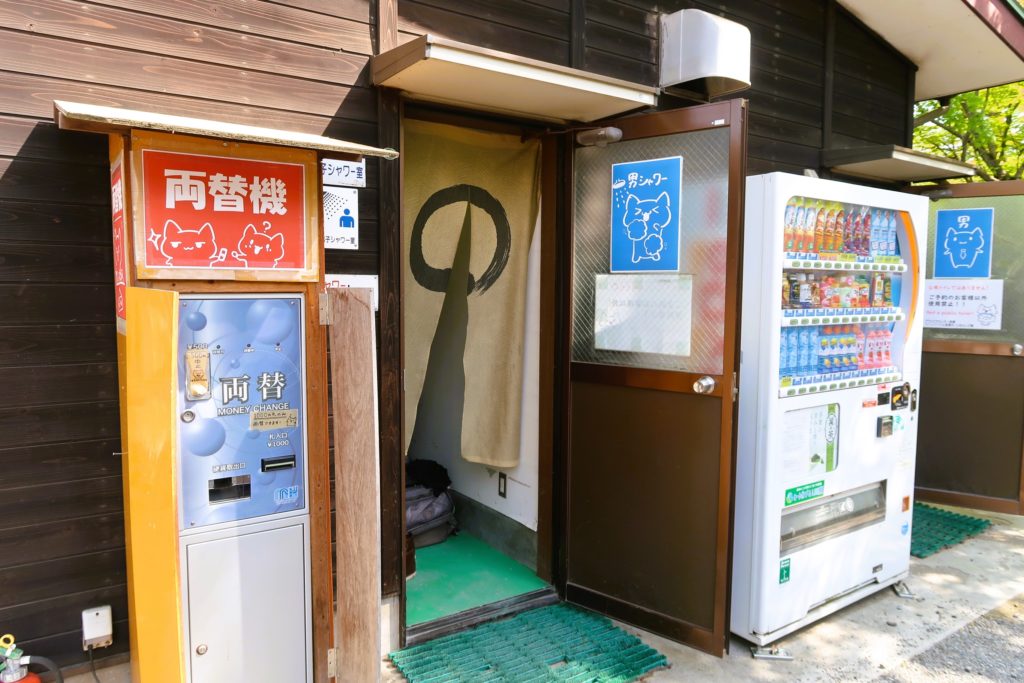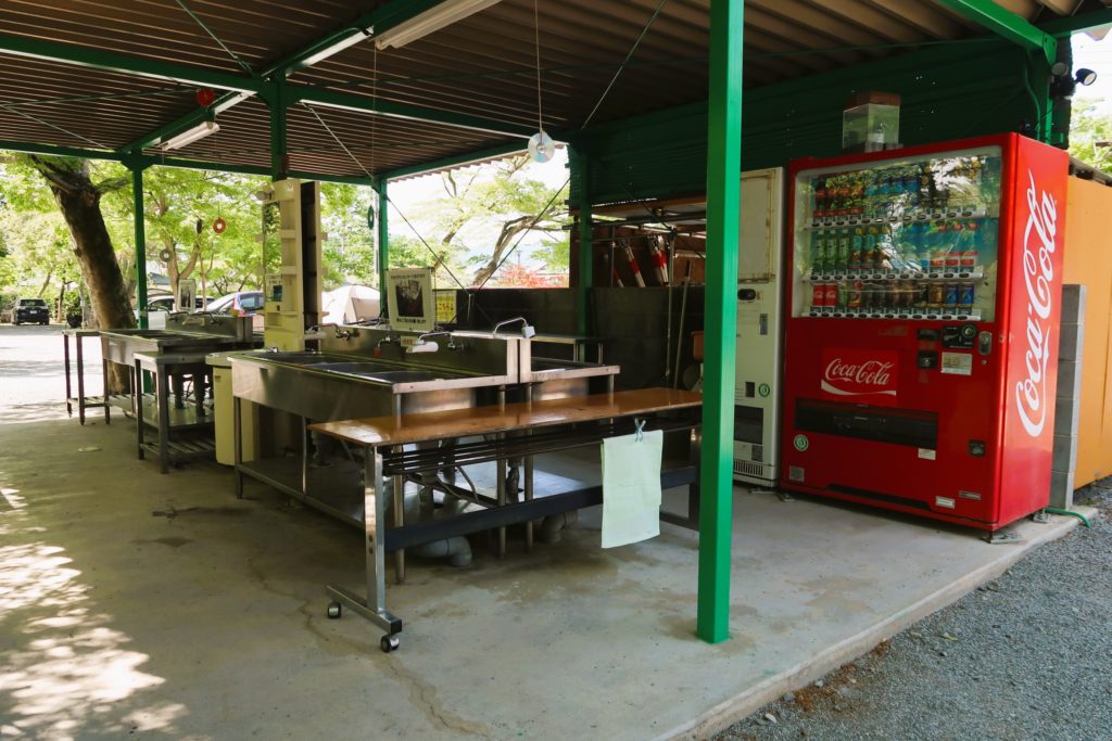 炊事場の中に、薪・炭・シャンプー&リンスなどの無人販売機があるのがうれしいところ♪