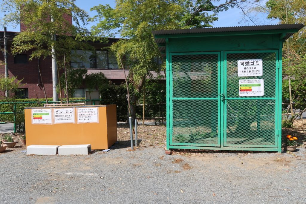 ゴミ捨て場は管理棟の横にあり、有料のゴミ袋を購入して捨てることができます。
