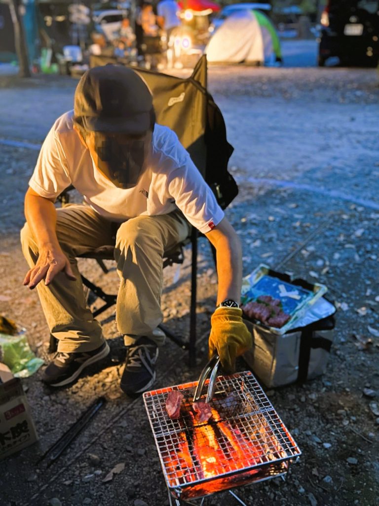 肉を焼いて、塩コショーで味付けしただけですが、やっぱり外で食べると美味しく感じますね♪