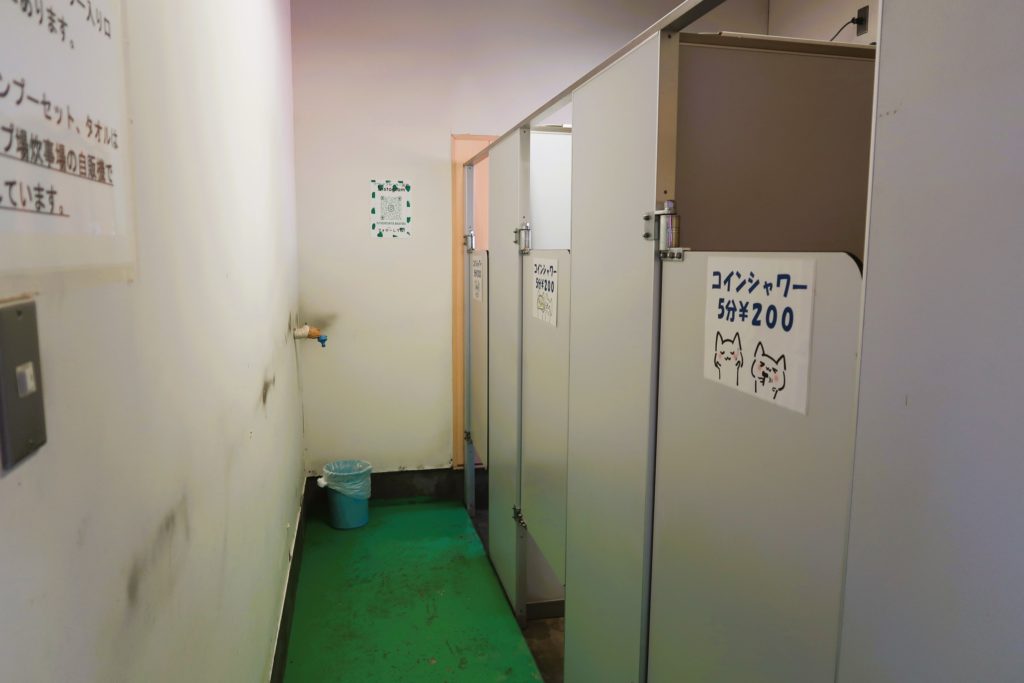 コインシャワーも3つあり、ブース内に着替えを置ける棚があるので便利です。