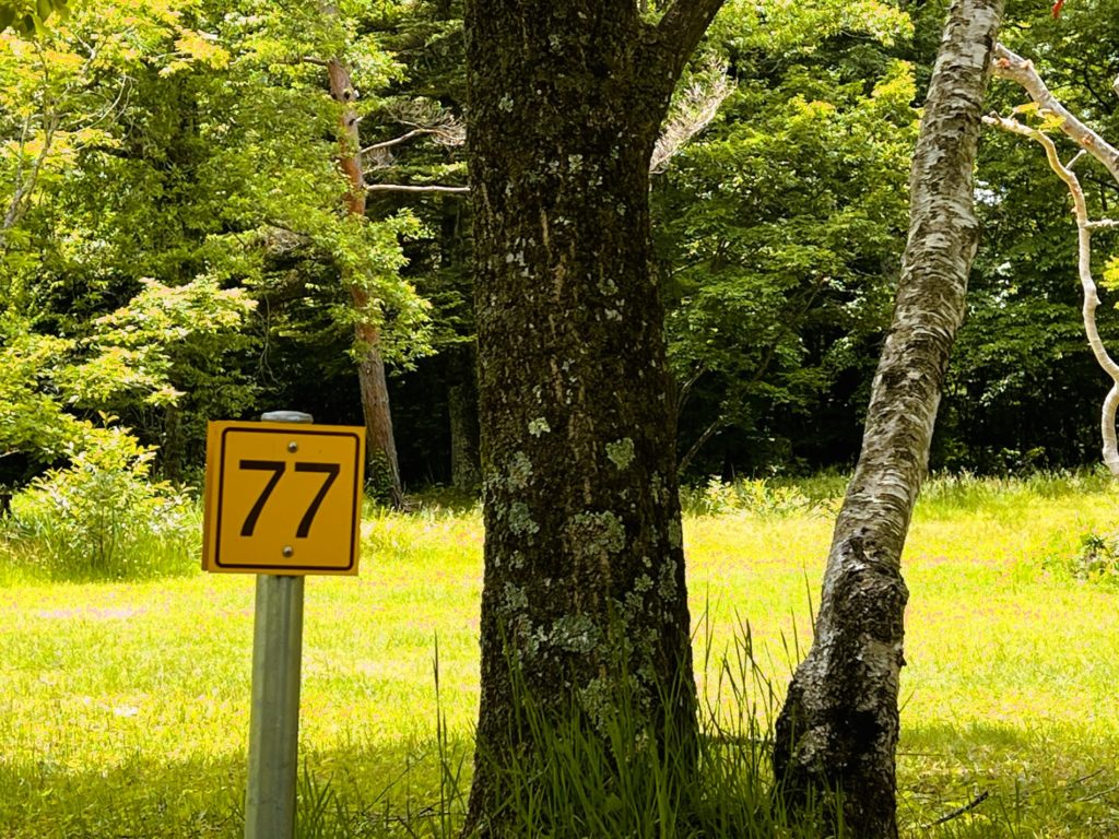 結局、管理棟にほど近い中央の芝生エリア、77番サイトに決めました。