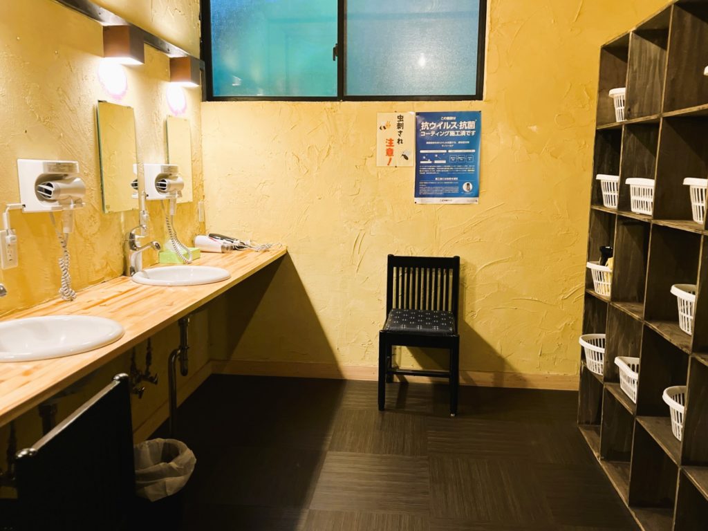 脱衣所はゆったりとしたスペースで、洗面台には、ドライヤーとティッシュがありました。