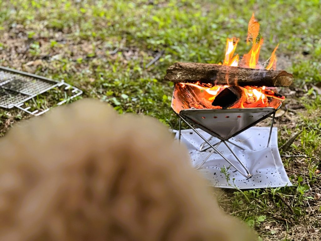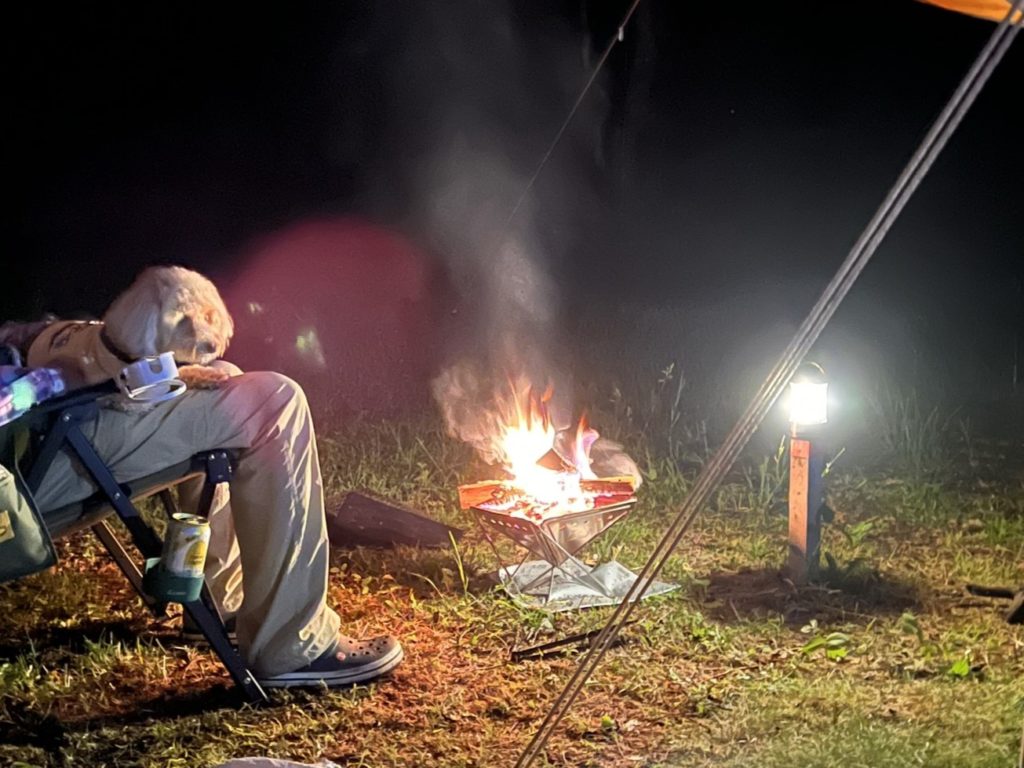 暗闇と静けさの中、焚火のリラックス効果を感じます。