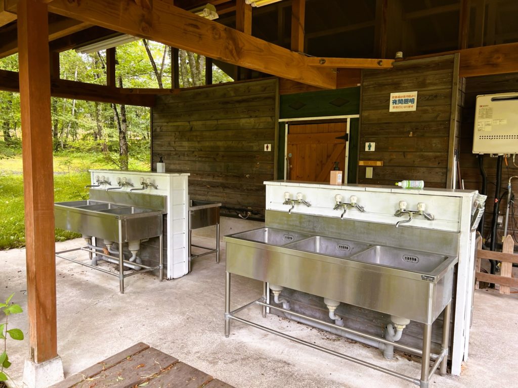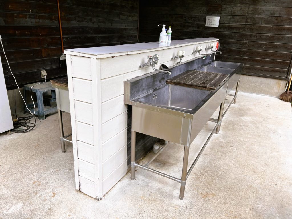 管理棟につながる建物に、炊事場・トイレ・シャワーがあります。