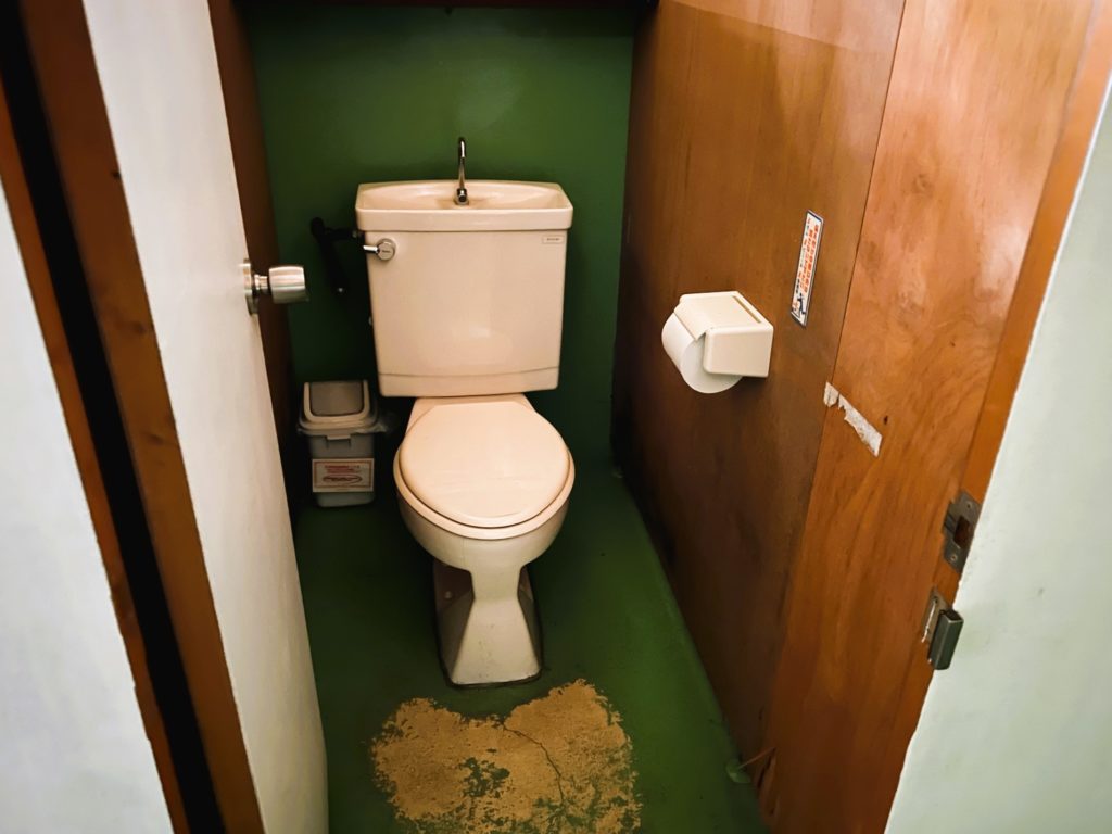 トイレは、ヒーター付きと普通の便座の2種類があります。