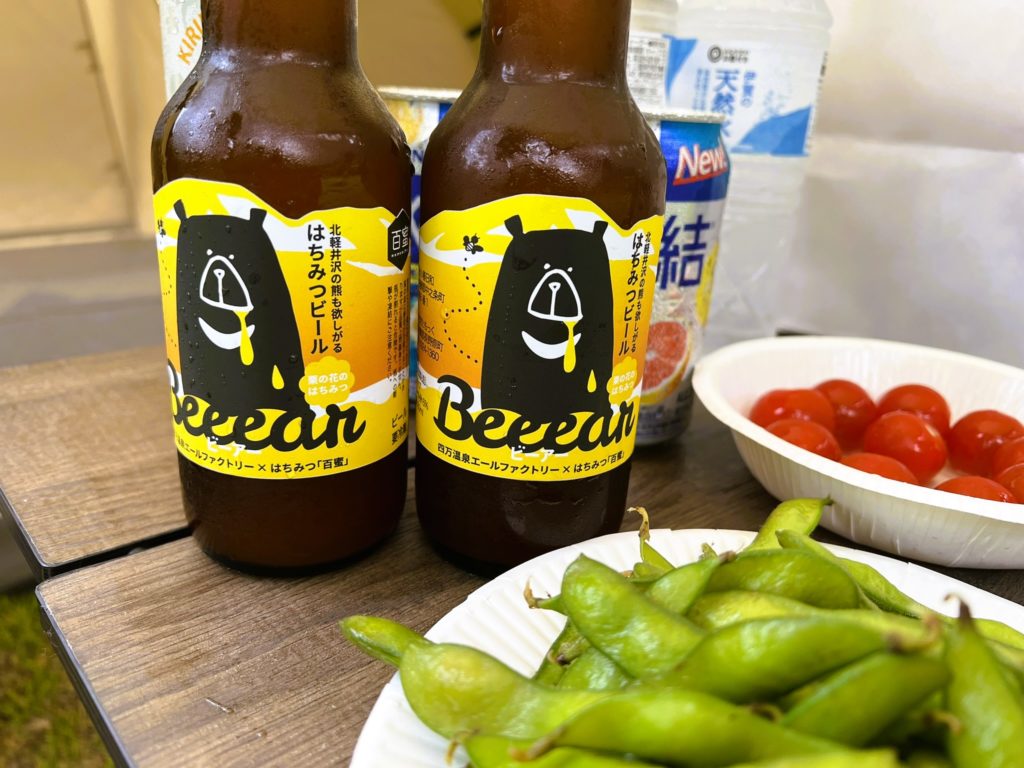 落ち着いたところで、『ルオムの森』で購入した「はちみつビール」で乾杯!