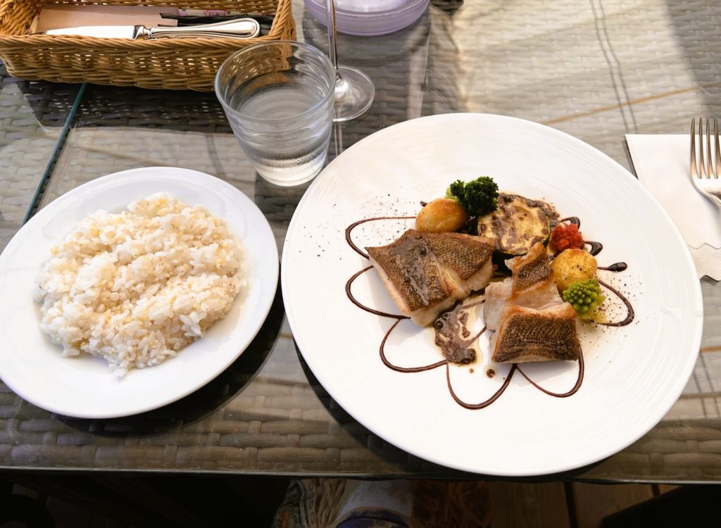 「本日のおすすめシェフランチセット」と「日本酒のスパークリング」をいただきました。