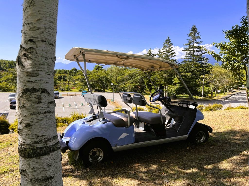 標高1,420mの山頂広場には、記念撮影用のカートが3台あります。