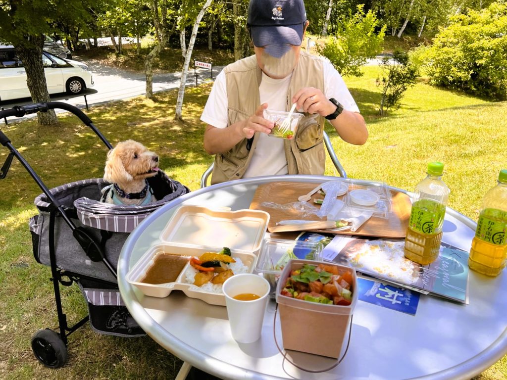 本日泊の「富士見高原ドッグランキャンプ場」から、徒歩(5分ほど)で来たので飲酒もOK♪