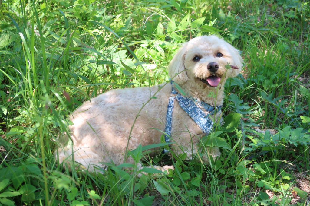 気温が高くなると心配していたのですが、標高が高くないにもかかわらず、避暑地のような涼しさのおかげで、エルモは今のところ元気に歩いています。