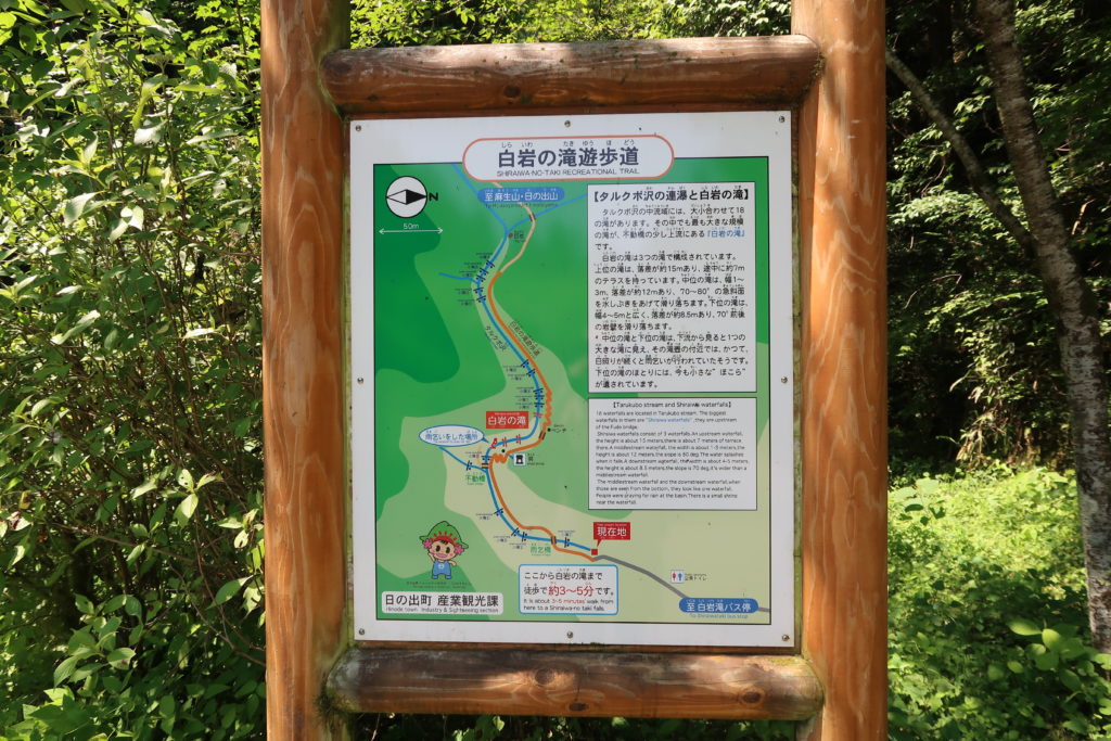 つるつる温泉へ向かう道184号線の途中「白岩の滝」入口を曲がり、だんだん細く荒れてくる道を突き進んでいくと駐車スペースがありました。